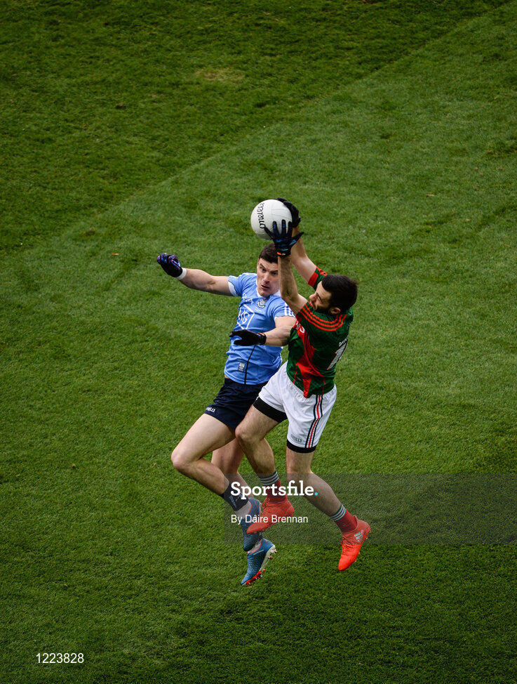 1 October 2016; Kevin McLoughlin of Mayo in action against Diarmuid Connolly of Dublin during the GAA Football All-Ireland Senior Championship Final Replay match between Dublin and Mayo at Croke Park in Dublin. Photo by Daire Brennan/Sportsfile