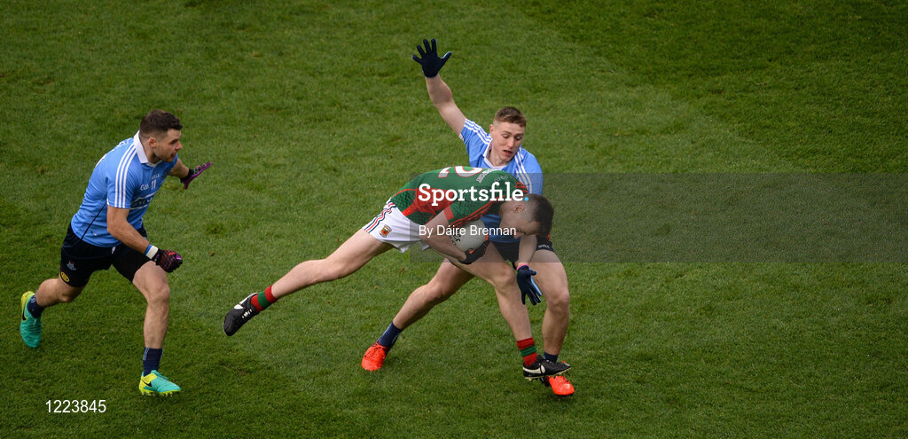 1 October 2016; Diarmuid O'Connor of Mayo in action against Kevin McManamon, left, and John Small of Dublin during the GAA Football All-Ireland Senior Championship Final Replay match between Dublin and Mayo at Croke Park in Dublin. Photo by Daire Brennan/Sportsfile