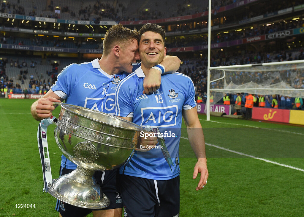 1 October 2016; Paul Flynn, left, and Bernard Brogan of Dublin celebrates with the Sam Maguire cup after the GAA Football All-Ireland Senior Championship Final Replay match between Dublin and Mayo at Croke Park in Dublin. Photo by Sportsfile