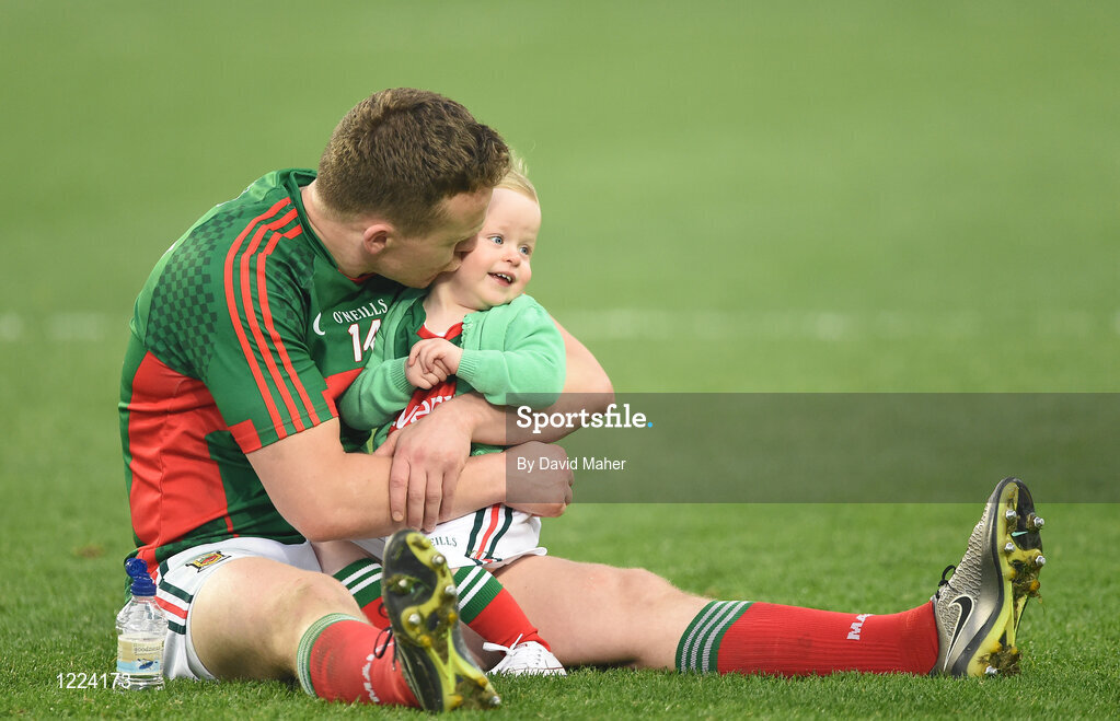 1 October 2016; A dejected Andy Moran of Mayo with his daughter Charlotte at the end of the GAA Football All-Ireland Senior Championship Final Replay match between Dublin and Mayo at Croke Park in Dublin. Photo by David Maher/Sportsfile