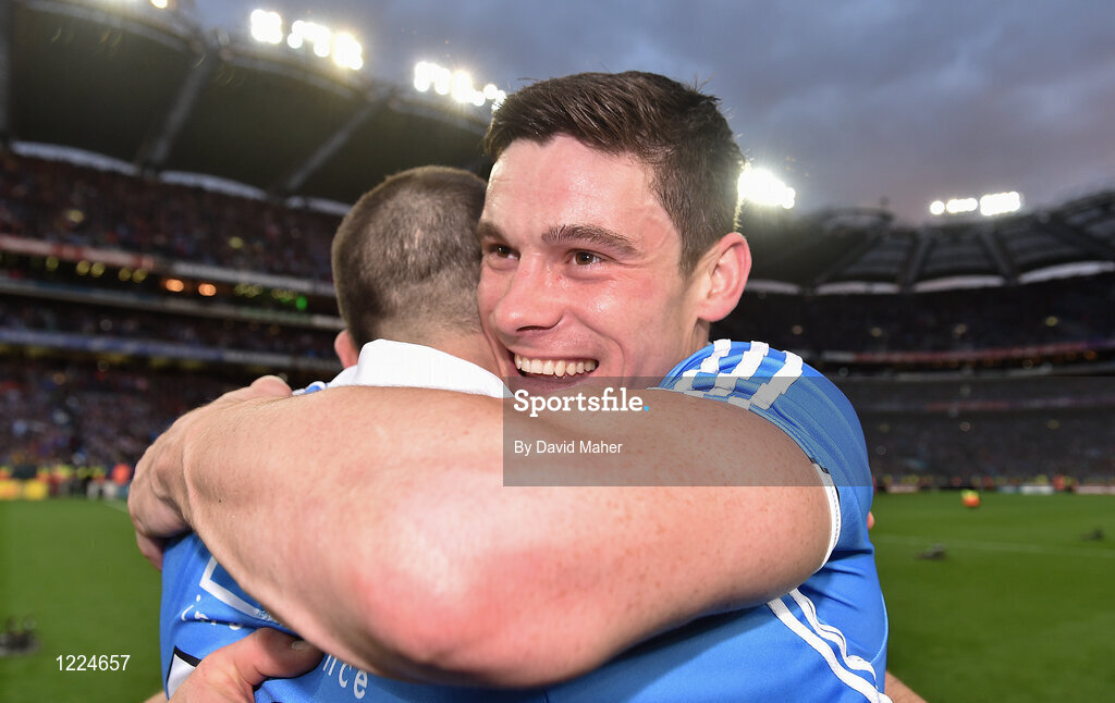 1 October 2016; Diarmuid Connolly of Dublin celebrates with Denis Bastick at the end of the GAA Football All-Ireland Senior Championship Final Replay match between Dublin and Mayo at Croke Park in Dublin. Photo by David Maher/Sportsfile