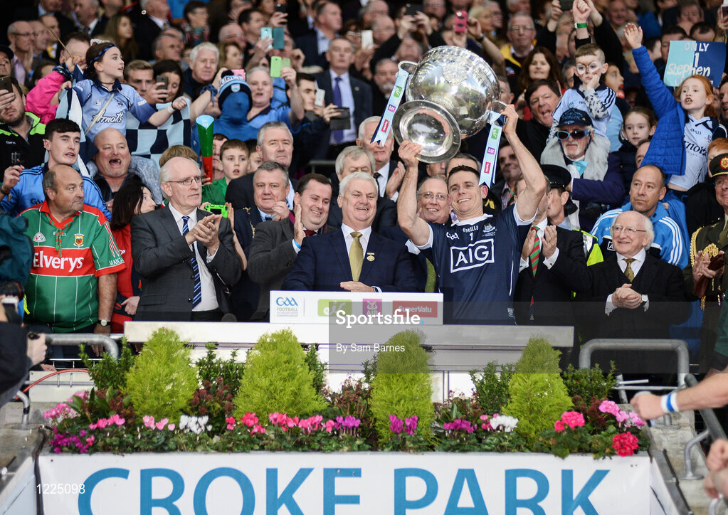 1 October 2016; Dublin captain Stephen Cluxton lifts the Sam Maguire Cup after the GAA Football All-Ireland Senior Championship Final Replay match between Dublin and Mayo at Croke Park in Dublin. Photo by Sam Barnes/Sportsfile