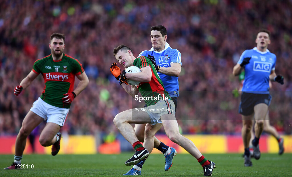 1 October 2016; Diarmuid O'Connor of Mayo in action against Diarmuid Connolly of Dublin during the GAA Football All-Ireland Senior Championship Final Replay match between Dublin and Mayo at Croke Park in Dublin. Photo by Stephen McCarthy/Sportsfile