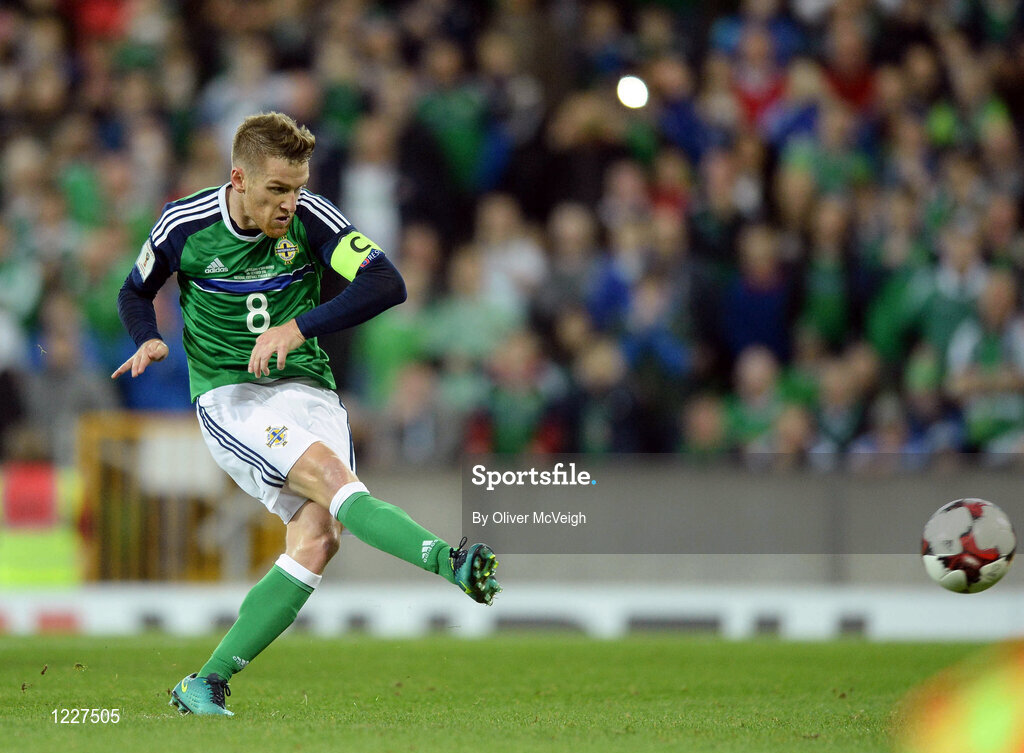 8 October 2016; Steve Davis of Northern Ireland scores his sides first goal from a penalty during the FIFA World Cup Group C Qualifier match between Northern Ireland and San Marino at Windsor Park in Belfast. Photo by Oliver McVeigh/Sportsfile