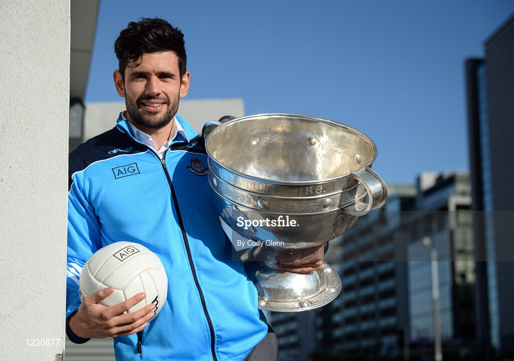 18 October 2016; AIG Insurance, proud sponsor of Dublin GAA, held a reception at its offices today to mark the Dublin football team’s All-Ireland success. Pictured is Cian O'Sullivan of Dublin with the Sam Maguire cup. For more information about AIG Insurance’s products and services go to www.aig.ie or call 1890 50 27 27. AIG Offices in North Wall Quay, Dublin. Photo by Cody Glenn/Sportsfile
