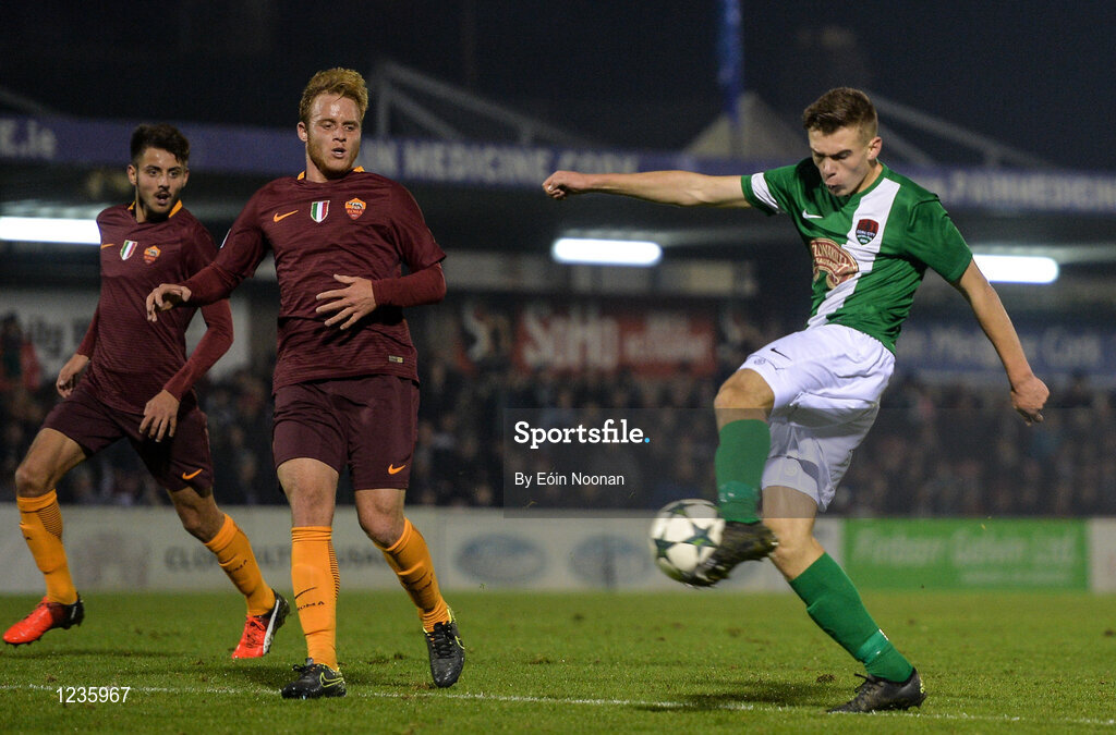 2 November 2016; Aaron Drinan of Cork City scores his side's first goal during the UEFA Youth League match between Cork City and AS Roma at Turners Cross in Cork. Photo by Eóin Noonan/Sportsfile