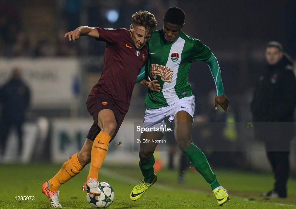 2 November 2016; Chiedozie Ogbene of Cork City in action against Davide Frattesi of AS Roma during UEFA Youth League match between Cork City and AS Roma at Turners Cross in Cork. Photo by Eóin Noonan/Sportsfile