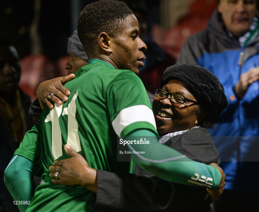 2 November 2016; Chiedozie Obgbene of Cork City with his mother Christina Ogbene after the UEFA Youth League match between Cork City and AS Roma at Turners Cross in Cork. Photo by Eóin Noonan/Sportsfile