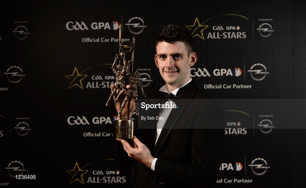 4 November 2016; Mayo footballer Brendan Harrison with his award at the 2016 GAA/GPA Opel All-Stars Awards at the Convention Centre in Dublin. Photo by Seb Daly/Sportsfile