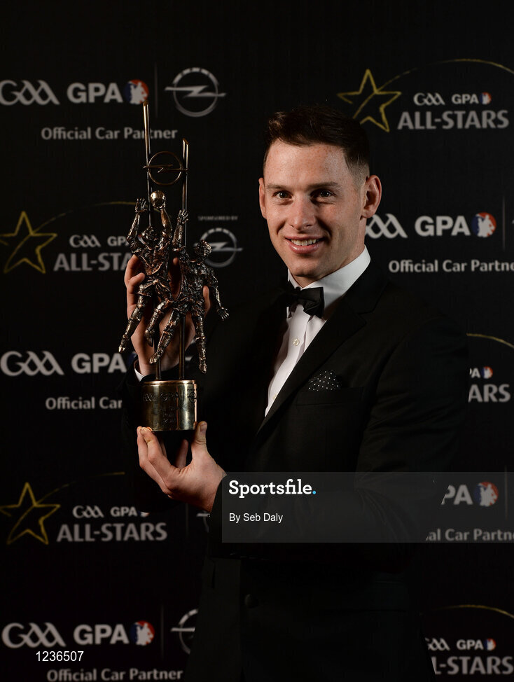 4 November 2016; Dublin footballer Philly McMahon with his award at the 2016 GAA/GPA Opel All-Stars Awards at the Convention Centre in Dublin. Photo by Seb Daly/Sportsfile