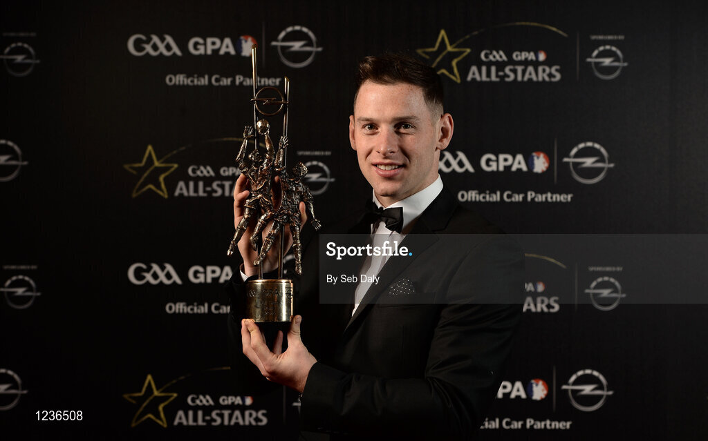 4 November 2016; Dublin footballer Philly McMahon with his award at the 2016 GAA/GPA Opel All-Stars Awards at the Convention Centre in Dublin. Photo by Seb Daly/Sportsfile