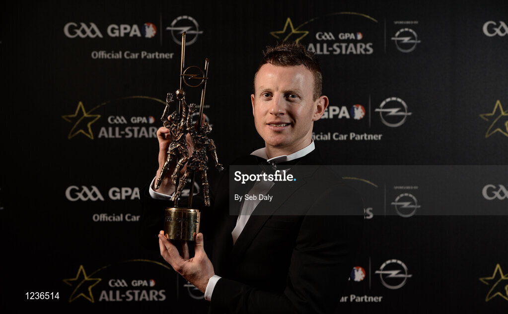 4 November 2016; Mayo footballer Colm Boyle with his award at the 2016 GAA/GPA Opel All-Stars Awards at the Convention Centre in Dublin. Photo by Seb Daly/Sportsfile