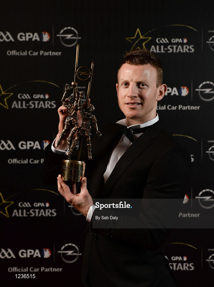 4 November 2016; Mayo footballer Colm Boyle with his award at the 2016 GAA/GPA Opel All-Stars Awards at the Convention Centre in Dublin. Photo by Seb Daly/Sportsfile