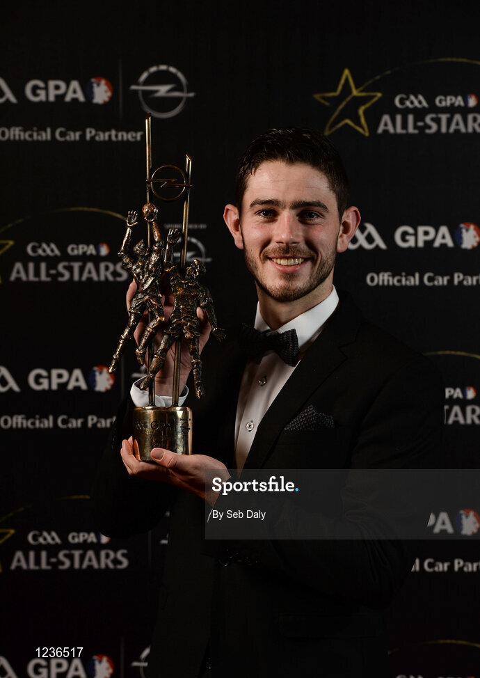4 November 2016; Donegal footballer Ryan McHugh with his award at the 2016 GAA/GPA Opel All-Stars Awards at the Convention Centre in Dublin. Photo by Seb Daly/Sportsfile