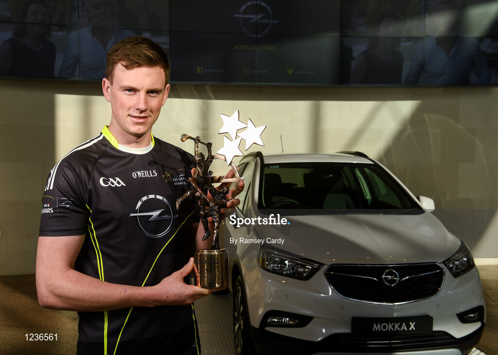 4 November 2016; Waterford hurler Austin Gleeson receiving the award for GAA/GPA Opel All-Star Hurler of the Year 2016 at the Convention Centre in Dublin. Photo by Ramsey Cardy/Sportsfile