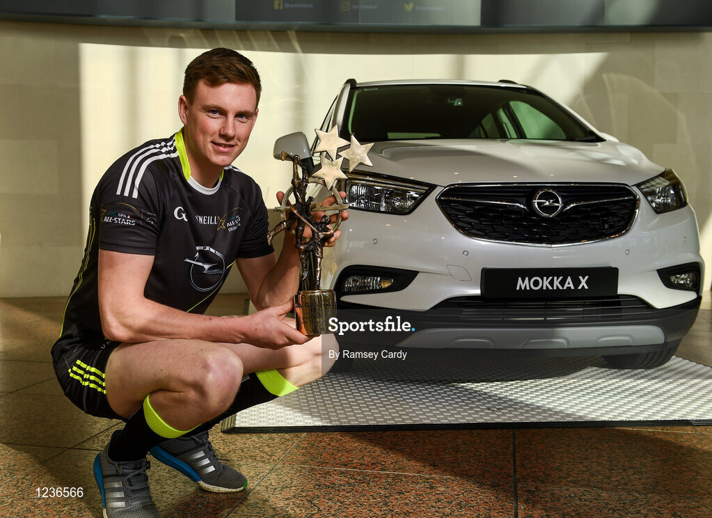 4 November 2016; Waterford hurler Austin Gleeson receiving the award for GAA/GPA Opel All-Star Hurler of the Year 2016 at the Convention Centre in Dublin. Photo by Ramsey Cardy/Sportsfile