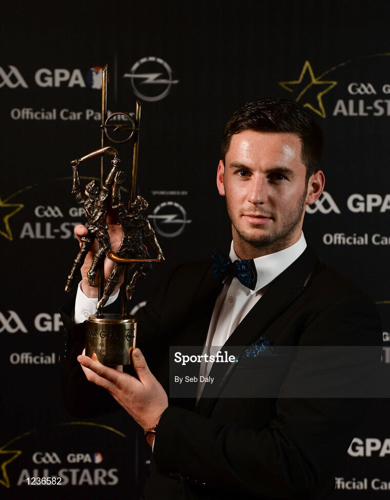 4 November 2016; Tipperary hurler Cathal Barrett with his award at the 2016 GAA/GPA Opel All-Stars Awards at the Convention Centre in Dublin. Photo by Seb Daly/Sportsfile