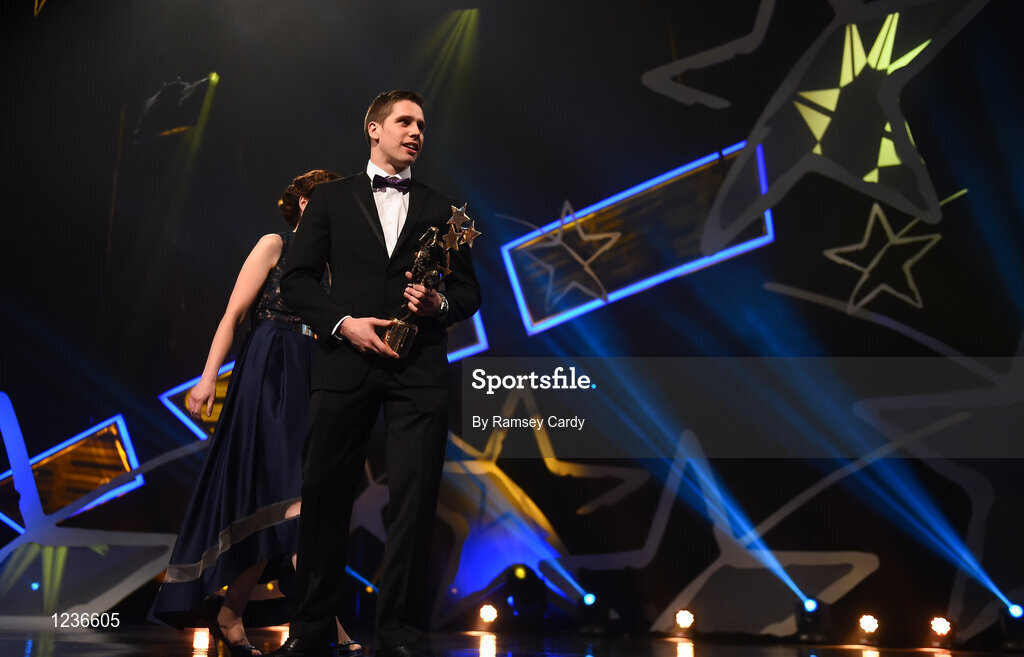 4 November 2016; Mayo footballer Lee Keegan with his footballer of the year award at the 2016 GAA/GPA Opel All-Stars Awards at the Convention Centre in Dublin. Photo by Ramsey Cardy/Sportsfile
