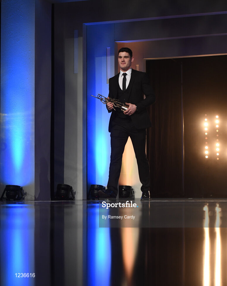 4 November 2016; Dublin footballer Diarmuid Connolly with his award at the 2016 GAA/GPA Opel All-Stars Awards at the Convention Centre in Dublin. Photo by Ramsey Cardy/Sportsfile