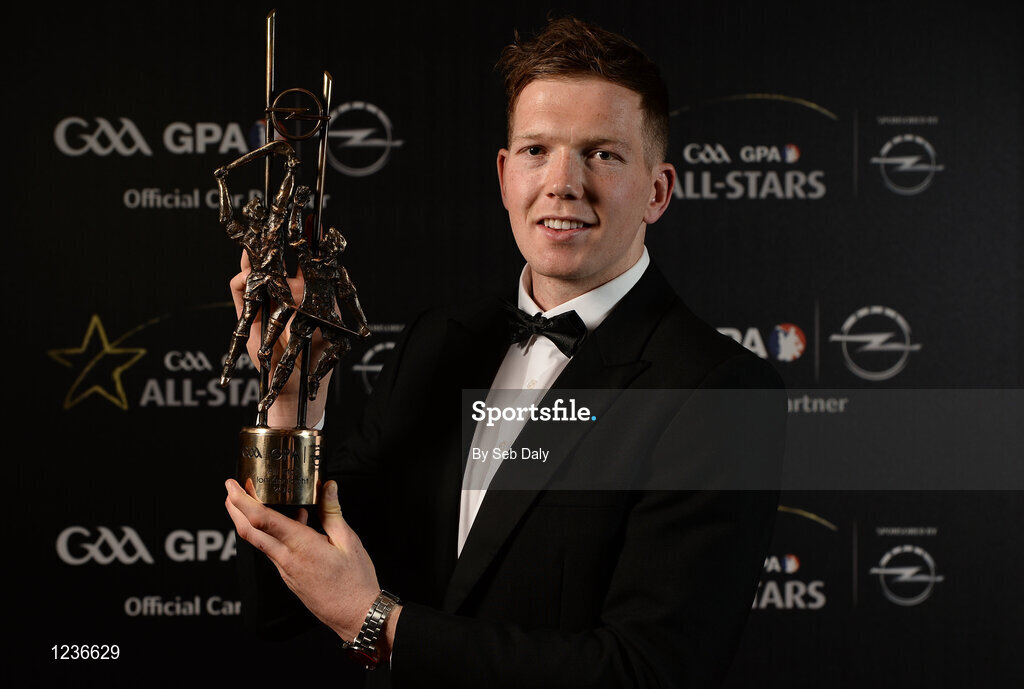 4 November 2016; Kilkenny hurler Walter Welsh with his award at the 2016 GAA/GPA Opel All-Stars Awards at the Convention Centre in Dublin. Photo by Seb Daly/Sportsfile