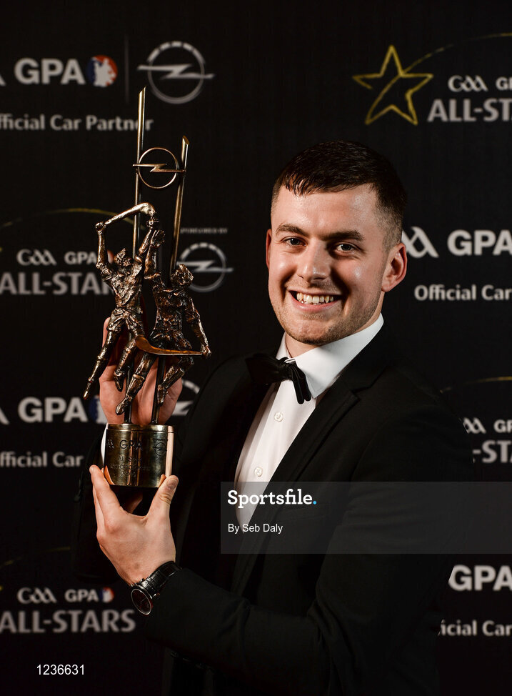 4 November 2016; Waterford hurler Jamie Barron with his award at the 2016 GAA/GPA Opel All-Stars Awards at the Convention Centre in Dublin. Photo by Seb Daly/Sportsfile