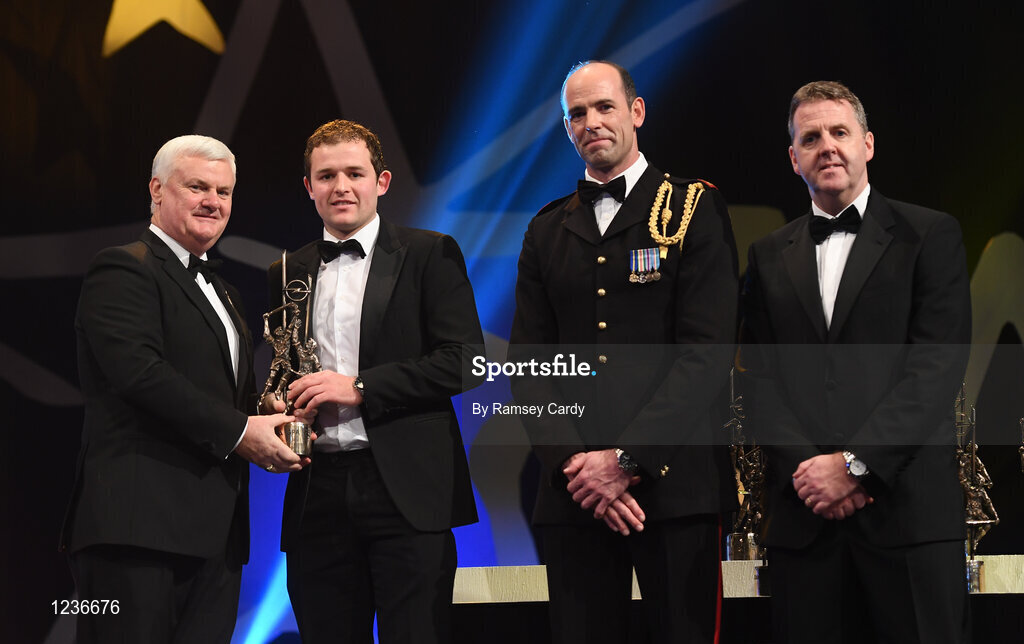 4 November 2016; Kilkenny hurler Pádraig Walsh receives his award from Uachtarán Chumann Lúthchleas Gael Aogán Ó Fearghail, in the company of Dermot Earley, 2nd from right, GPA President, and Dave Sheeran, right, Managing Director, Opel Ireland, at the 2016 GAA/GPA Opel All-Stars Awards at the Convention Centre in Dublin. Photo by Ramsey Cardy/Sportsfile