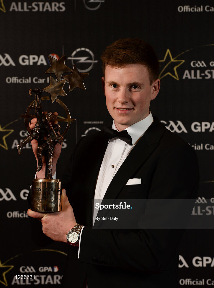 4 November 2016; Waterford hurler Austin Gleeson with his Young Hurler of the Year award at the 2016 GAA/GPA Opel All-Stars Awards at the Convention Centre in Dublin. Photo by Seb Daly/Sportsfile