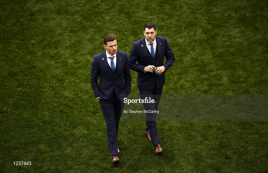 6 November 2016; Andy Boyle, left, and Brian Gartland of Dundalk prior to the Irish Daily Mail FAI Cup Final match between Cork City and Dundalk at Aviva Stadium in Lansdowne Road, Dublin. Photo by Stephen McCarthy/Sportsfile