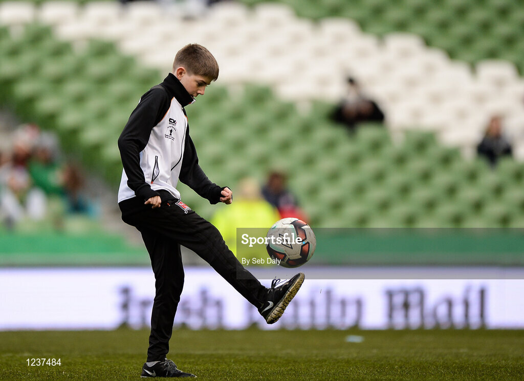 6 November 2016; Daire Walsh, son of Dundalk kitman Noel Walsh, plays keepie uppie with a ball ahead of the Irish Daily Mail FAI Cup Final match between Cork City and Dundalk at Aviva Stadium in Lansdowne Road, Dublin. Photo by Seb Daly/Sportsfile