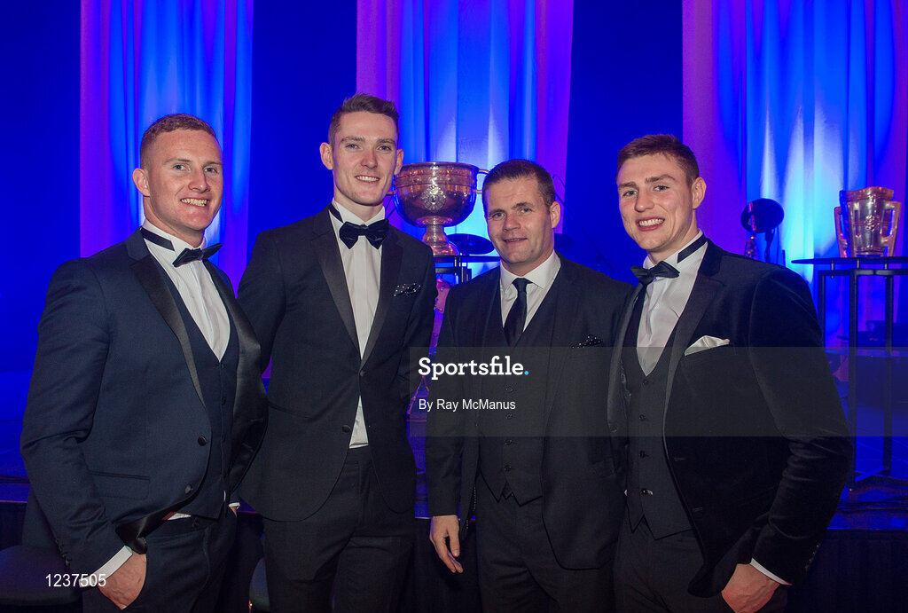 4 November 2016; Ciaran Kilkenny, Brian Fenton, Dessie Farrell and John Small at the 2016 GAA/GPA Opel All-Stars Awards at the Convention Centre, Dublin. Photo by Ray McManus/Sportsfile