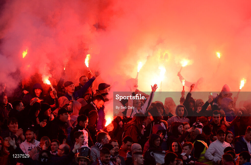 6 November 2016; Dundalk supporters ahead of the Irish Daily Mail FAI Cup Final match between Cork City and Dundalk at Aviva Stadium in Lansdowne Road, Dublin. Photo by Seb Daly/Sportsfile