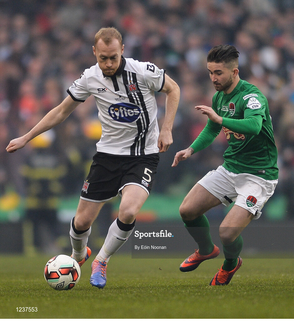 6 November 2016; Chris Shields of Dundalk in action against Seán Maguire of Cork City during the Irish Daily Mail FAI Cup Final match between Cork City and Dundalk at Aviva Stadium in Lansdowne Road, Dublin. Photo by Eóin Noonan/Sportsfile