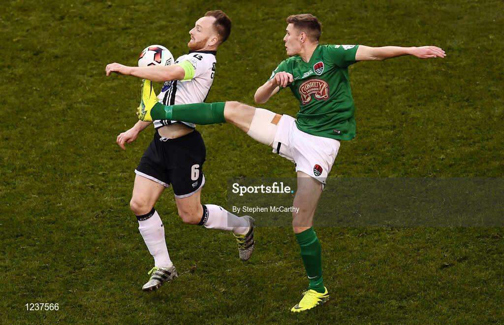 6 November 2016; Stephen O'Donnell of Dundalk in action against Garry Buckley of Cork City during the Irish Daily Mail FAI Cup Final match between Cork City and Dundalk at Aviva Stadium in Lansdowne Road, Dublin. Photo by Stephen McCarthy/Sportsfile