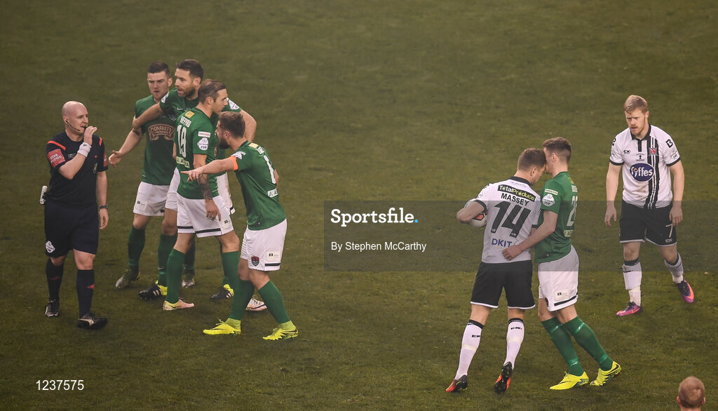 6 November 2016; Dane Massey of Dundalk and Garry Buckley of Cork City clash during the Irish Daily Mail FAI Cup Final match between Cork City and Dundalk at Aviva Stadium in Lansdowne Road, Dublin. Photo by Stephen McCarthy/Sportsfile