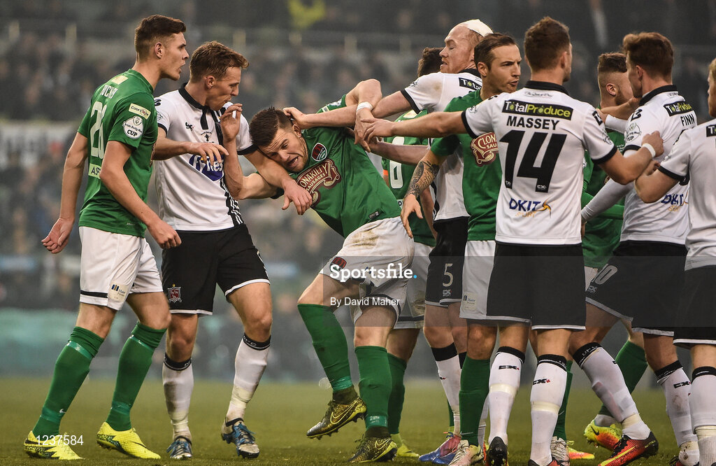 6 November 2016; Players from Cork City and Dundalk clash during the Irish Daily Mail FAI Cup Final match between Cork City and Dundalk at Aviva Stadium in Lansdowne Road, Dublin. Photo by David Maher/Sportsfile