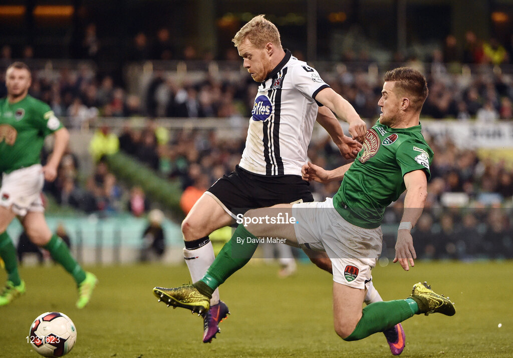 6 November 2016; Daryl Horgan of Dundalk in action against Steven Beattie of Cork City during the Irish Daily Mail FAI Cup Final match between Cork City and Dundalk at Aviva Stadium in Lansdowne Road, Dublin. Photo by David Maher/Sportsfile