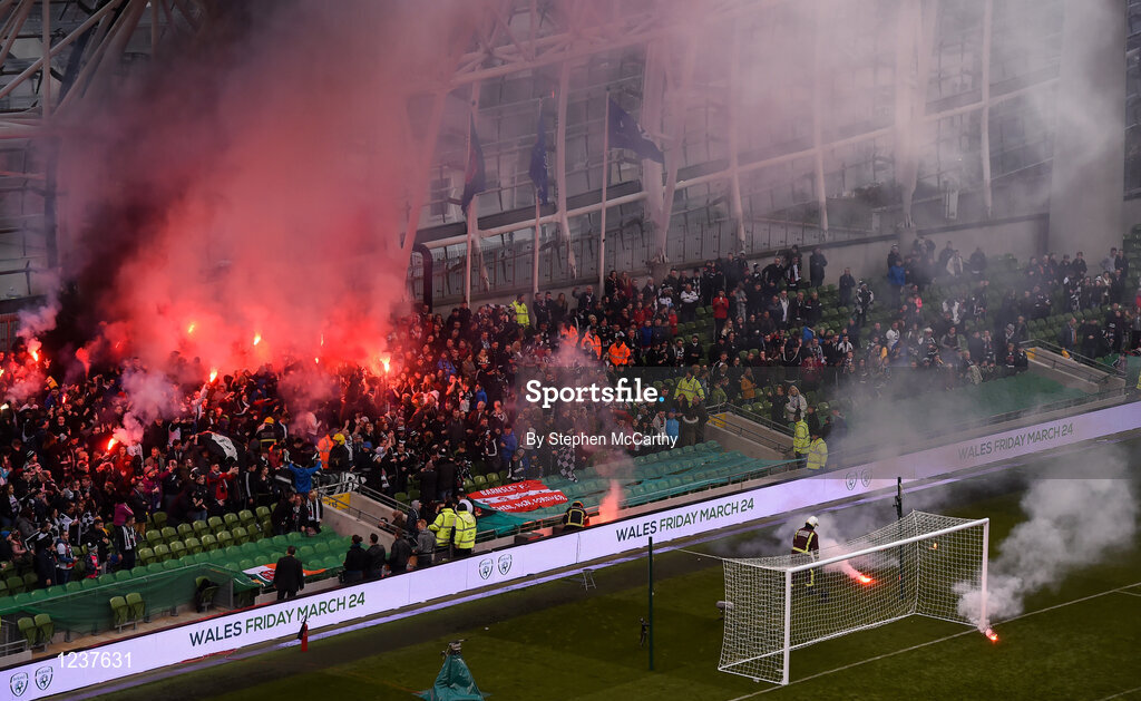 6 November 2016; Dundalk supporters light flares before the Irish Daily Mail FAI Cup Final match between Cork City and Dundalk at Aviva Stadium in Lansdowne Road, Dublin. Photo by Stephen McCarthy/Sportsfile