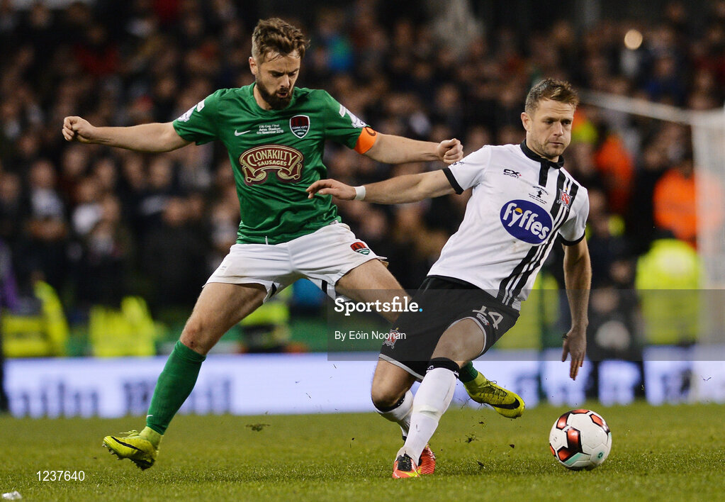 6 November 2016; Dane Massey of Dundalk in action against Greg Bolger of Cork City during the Irish Daily Mail FAI Cup Final match between Cork City and Dundalk at Aviva Stadium in Lansdowne Road, Dublin. Photo by Eóin Noonan/Sportsfile