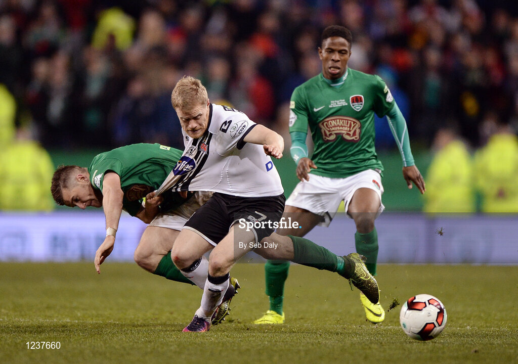 6 November 2016; Daryl Horgan of Dundalk in action against Steven Beattie of Cork City during the Irish Daily Mail FAI Cup Final match between Cork City and Dundalk at Aviva Stadium in Lansdowne Road, Dublin. Photo by Seb Daly/Sportsfile