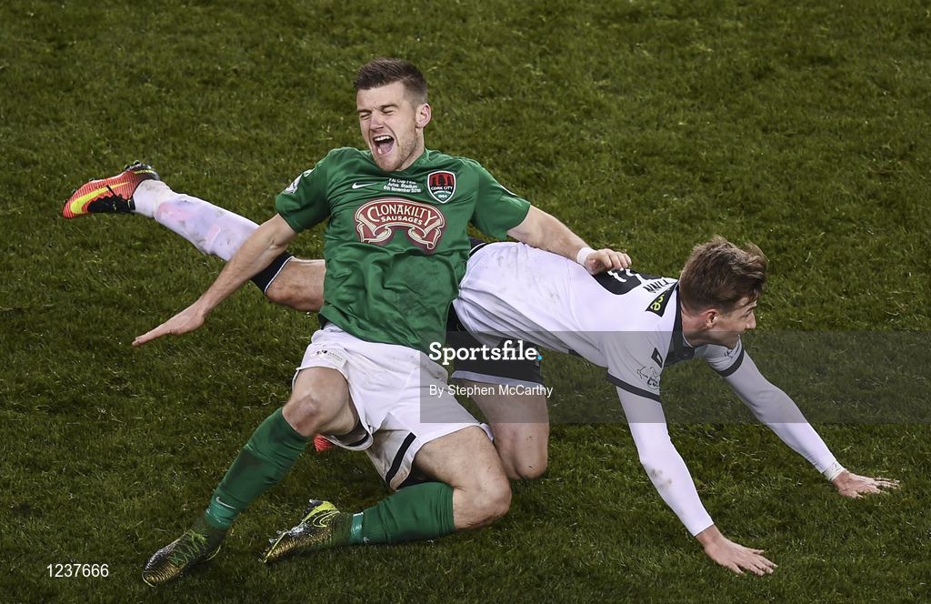 6 November 2016; Steven Beattie of Cork City clashes with Ronan Finn of Dundalk during the Irish Daily Mail FAI Cup Final match between Cork City and Dundalk at Aviva Stadium in Lansdowne Road, Dublin. Photo by Stephen McCarthy/Sportsfile