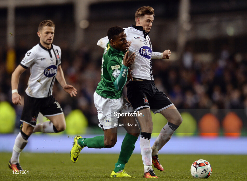 6 November 2016; Ronan Finn of Dundalk in action against Chiedozie Ogbene of Cork City during the Irish Daily Mail FAI Cup Final match between Cork City and Dundalk at Aviva Stadium in Lansdowne Road, Dublin. Photo by Eóin Noonan/Sportsfile