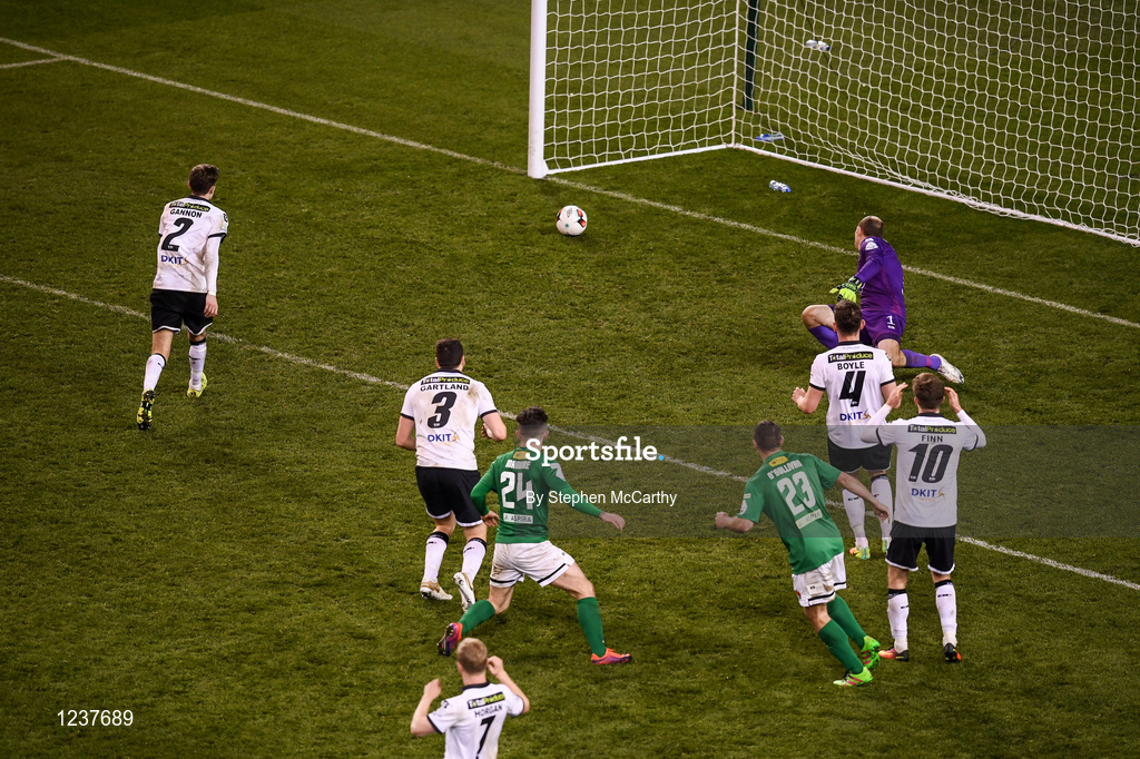 6 November 2016; Seán Maguire of Cork City scores his side's first goal during the Irish Daily Mail FAI Cup Final match between Cork City and Dundalk at Aviva Stadium in Lansdowne Road, Dublin. Photo by Stephen McCarthy/Sportsfile