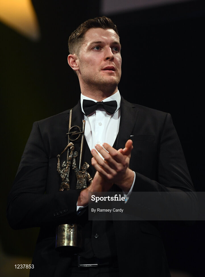 4 November 2016; Tipperary hurler Seamus Callanan with his award at the 2016 GAA/GPA Opel All-Stars Awards at the Convention Centre in Dublin. Photo by Ramsey Cardy/Sportsfile