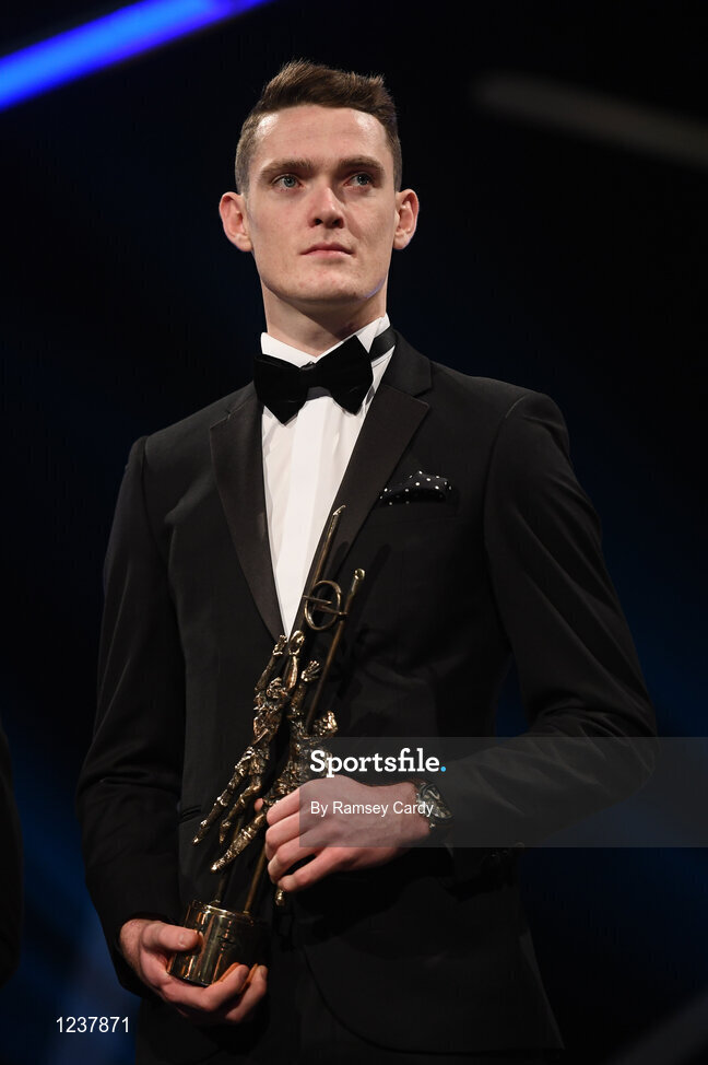 4 November 2016; Dublin footballer Brian Fenton with his award at the 2016 GAA/GPA Opel All-Stars Awards at the Convention Centre in Dublin. Photo by Ramsey Cardy/Sportsfile