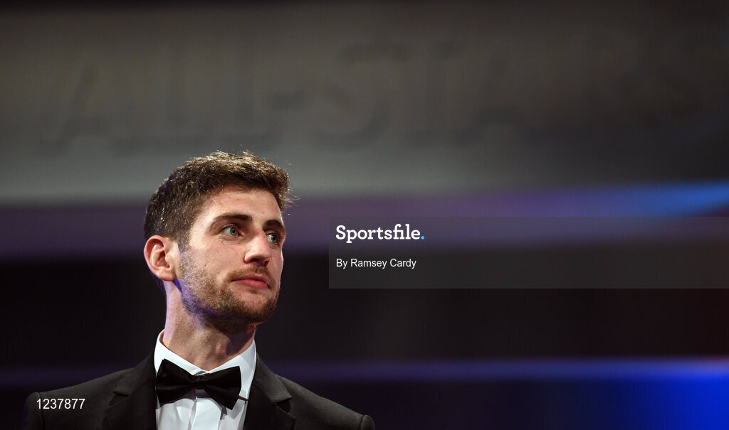 4 November 2016; Kerry footballer Paul Geaney with his award at the 2016 GAA/GPA Opel All-Stars Awards at the Convention Centre in Dublin. Photo by Ramsey Cardy/Sportsfile