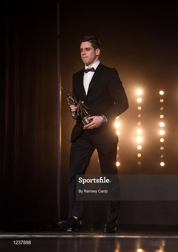 4 November 2016; Mayo footballer Lee Keegan with his award at the 2016 GAA/GPA Opel All-Stars Awards at the Convention Centre in Dublin. Photo by Ramsey Cardy/Sportsfile