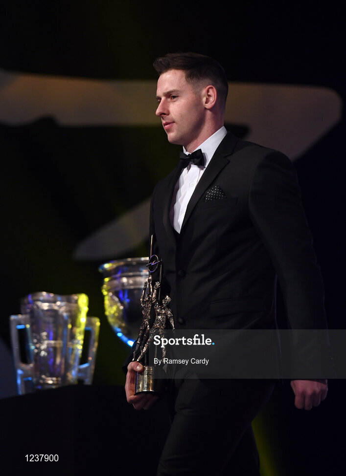 4 November 2016; Dublin footballer Phily McMahon with his award at the 2016 GAA/GPA Opel All-Stars Awards at the Convention Centre in Dublin. Photo by Ramsey Cardy/Sportsfile