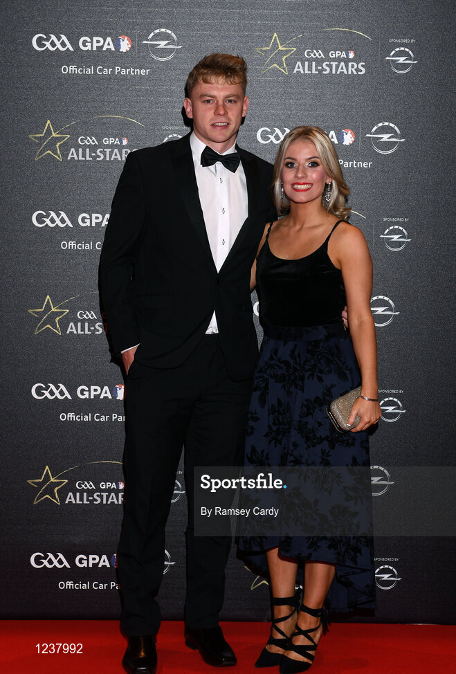 4 November 2016; Waterford hurler Philip Mahony and Anne-Marie Norris arrive for the 2016 GAA/GPA Opel All-Stars Awards at the Convention Centre in Dublin. Photo by Ramsey Cardy/Sportsfile