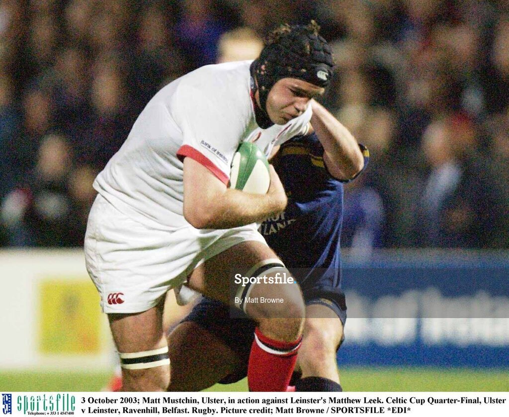 3 October 2003; Matt Mustchin, Ulster, in action against Leinster's Matthew Leek. Celtic Cup Quarter-Final, Ulster v Leinster, Ravenhill, Belfast. Rugby. Picture credit; Matt Browne / SPORTSFILE *EDI*