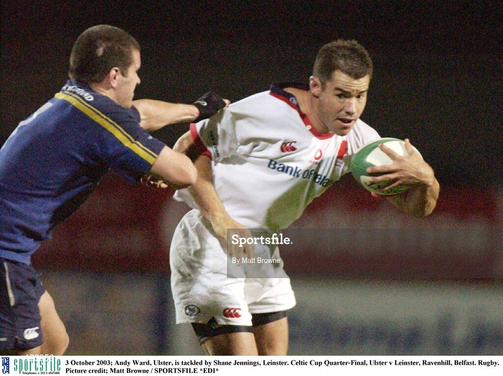 3 October 2003; Andy Ward, Ulster, is tackled by Shane Jennings, Leinster. Celtic Cup Quarter-Final, Ulster v Leinster, Ravenhill, Belfast. Rugby. Picture credit; Matt Browne / SPORTSFILE *EDI*
